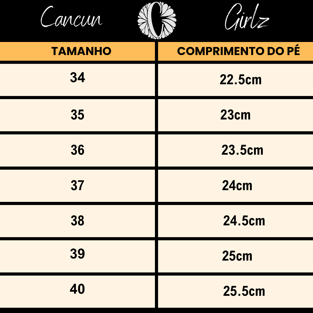 GUIA DE TAMANHOS CALÇADOS