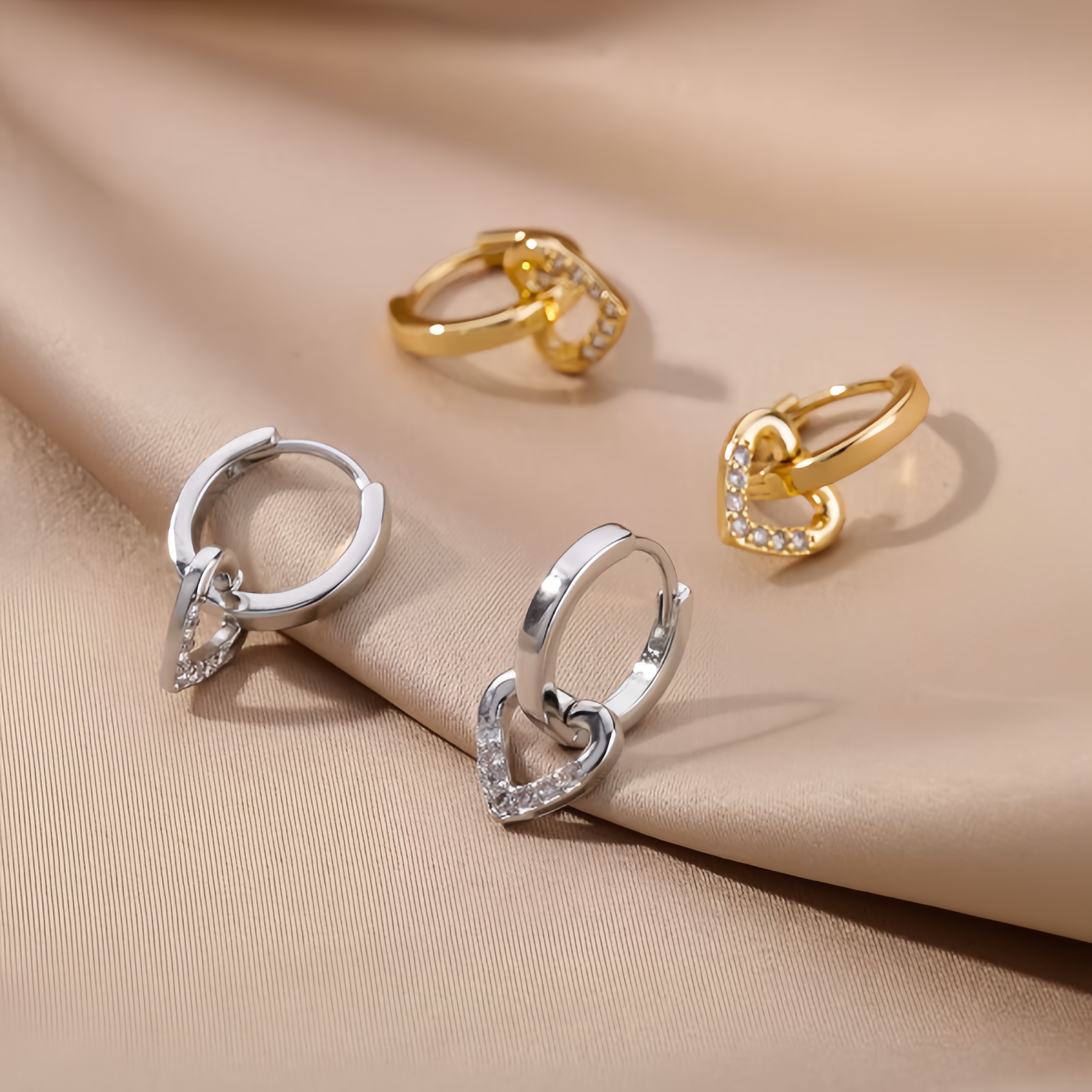 ✅ Design Sofisticado e Simbólico: Argolas douradas com corações vazados cravejados de zircônias – perfeitos para quem ama acessórios que falam de amor, vitalidade e elegância atemporal.