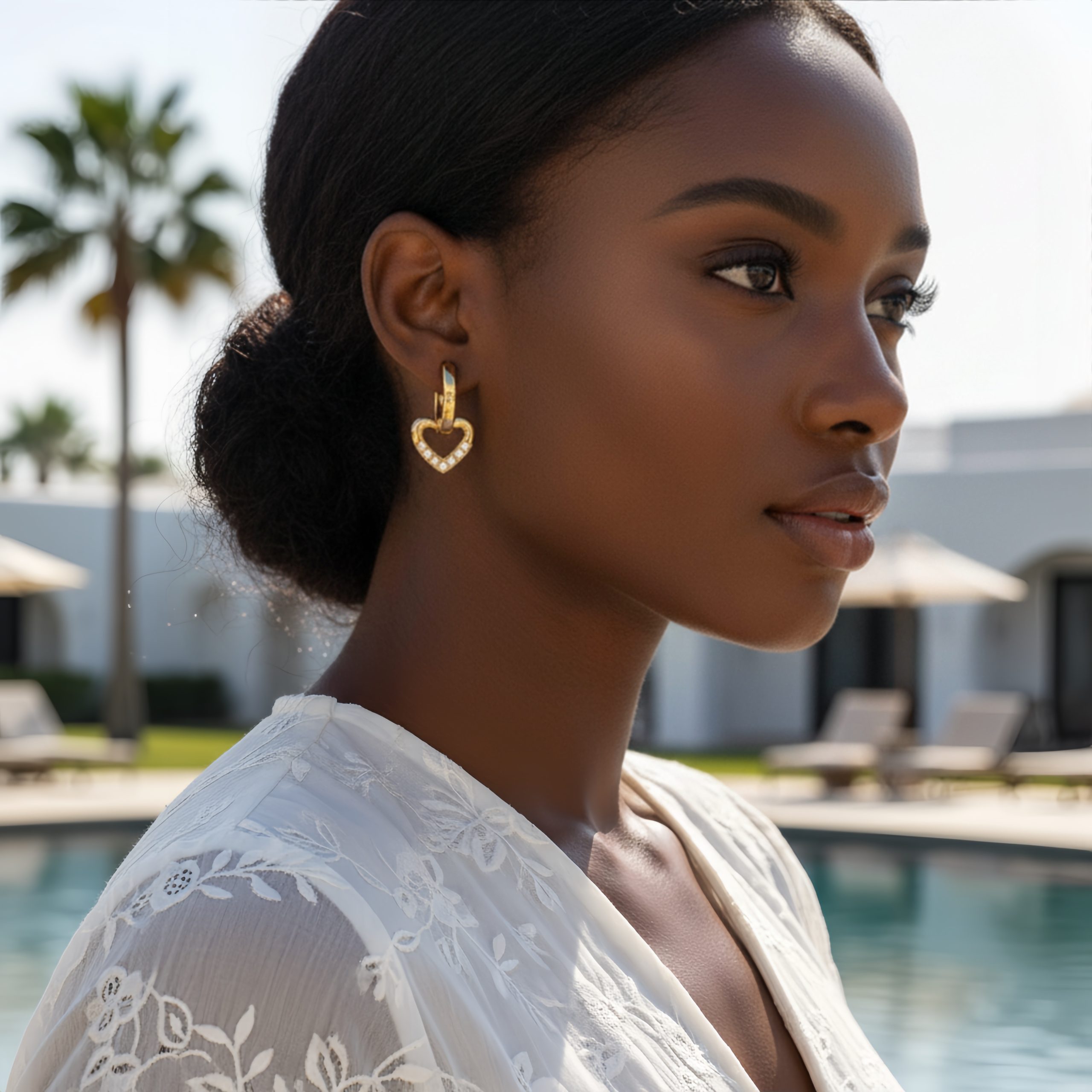 • 1x Brinco Coração com zircônias (argolinha + coração cravejado)