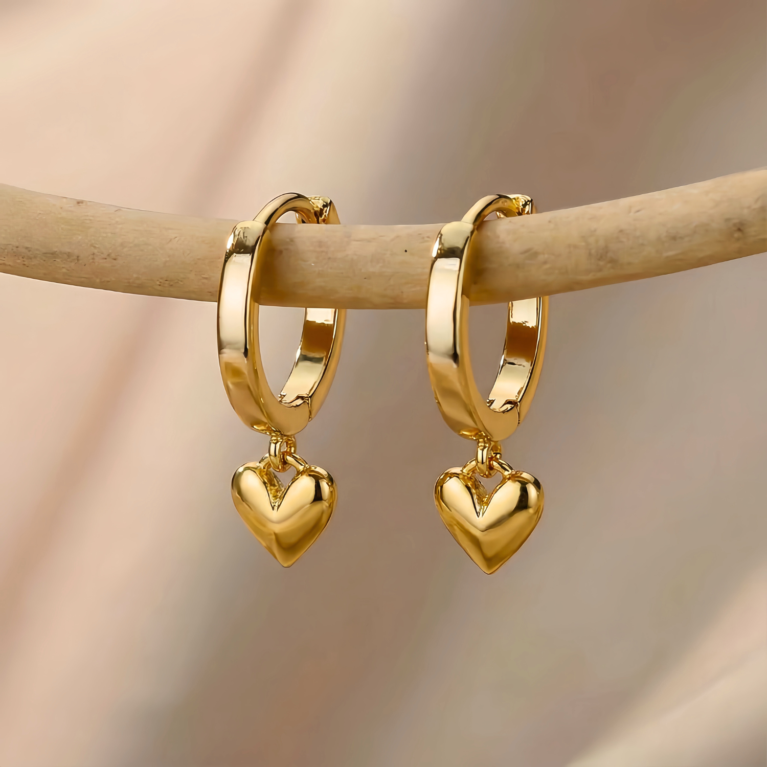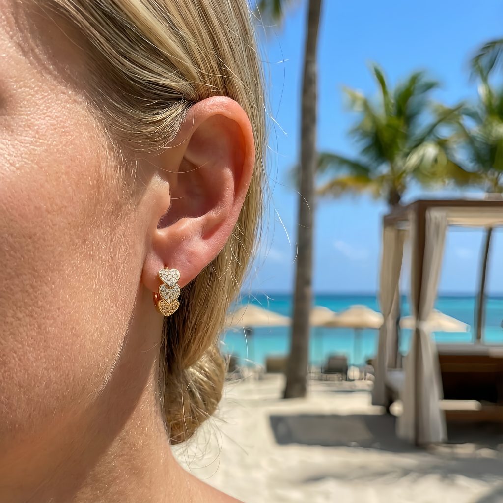 ✅ Brincos em formato de coração com aplicação de zircônias, produzidos em aço inoxidável banhado a ouro.