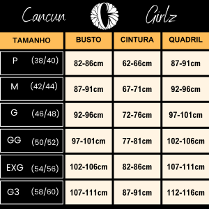💡 Dica importante: Cada marca tem sua forma de modelagem. Para evitar trocas, recomendamos escolher seu tamanho com base nas suas medidas (busto, cintura e quadril). É rápido e evita erros!