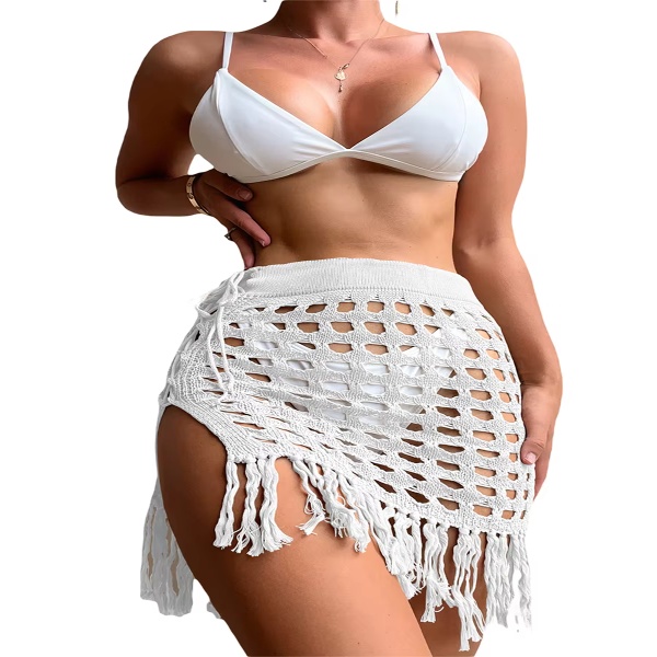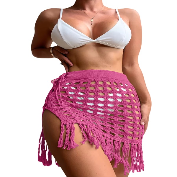 ✅ Design Moderno e Versátil: Mini saia cover-up em malha sarong, com detalhes ocos e acabamento com borlas vibrantes, perfeita para compor looks leves e cheios de personalidade.