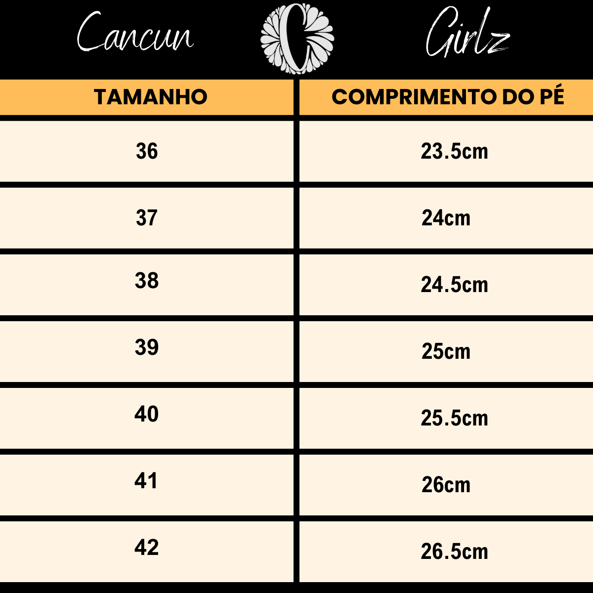 GUIA DE TAMANHOS CALÇADOS